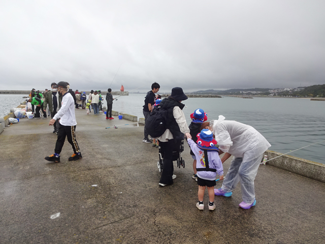 サビキ釣りになりますので、アジ、イワシ、サバが大いに釣れるかと思いましたが、ポツポツと釣れる程度でありましたが、子供も大人も大変喜んで釣りをされていました。