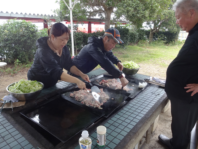 そして、釣り終了後の昼食は大釣り協スタッフによる特製焼きそばです。これが美味しいと大人気でした。食べ放題かというぐらいの量を作りましたので、炊事スタッフも大忙しでした。
